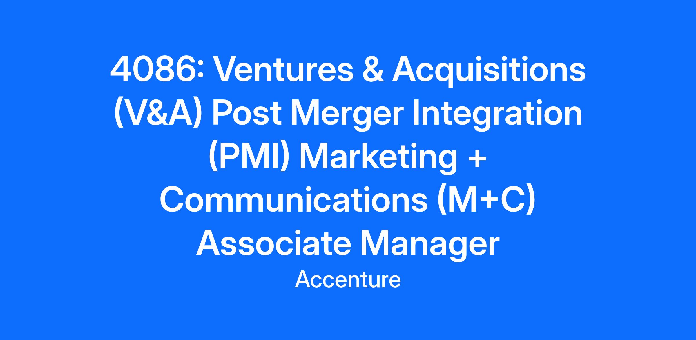 Title: 4086: Ventures & Acquisitions (V&A) Post Merger Integration (PMI) Marketing + Communications (M+C) Associate Manager