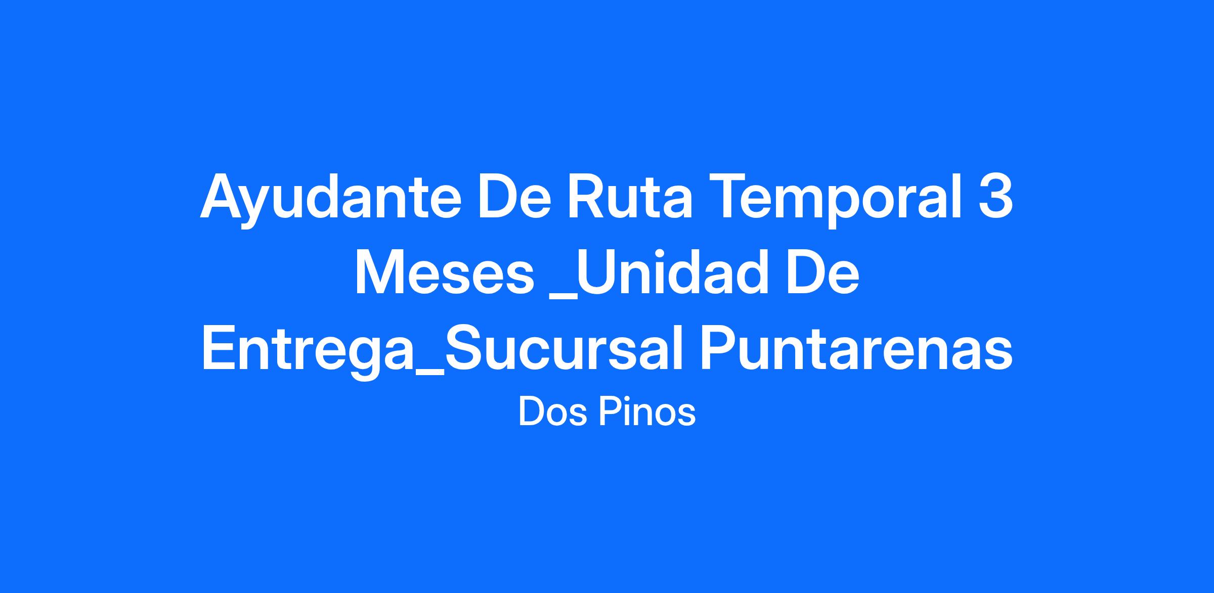 Ayudante De Ruta Temporal 3 Meses _Unidad De Entrega_Sucursal Puntarenas