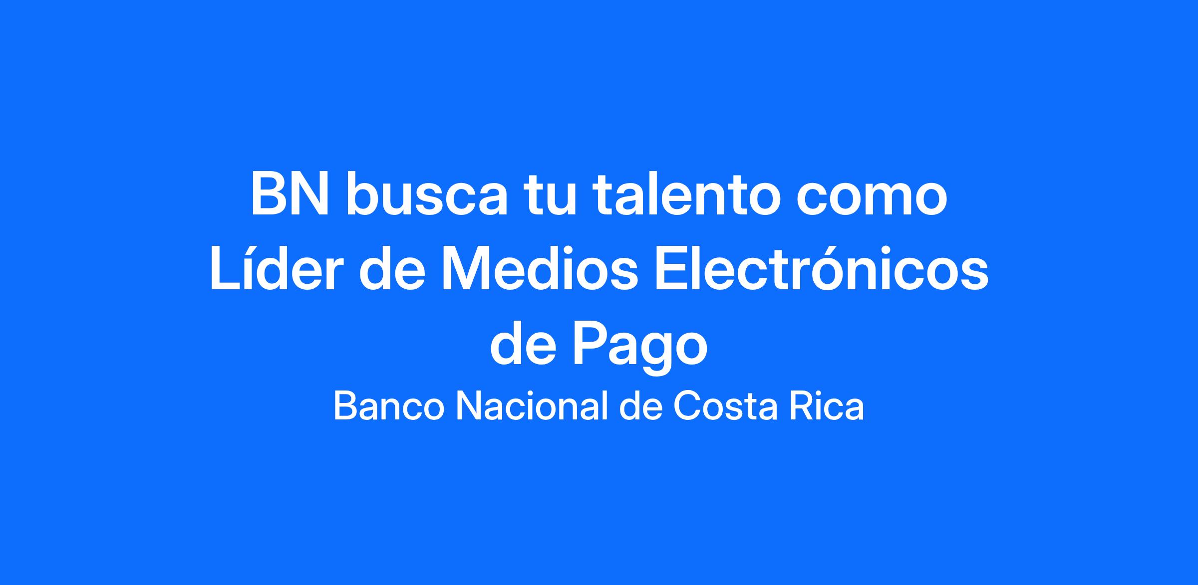 DescriptionBanco Nacional busca tu talento como Líder de Medios Electrónicos de Pago