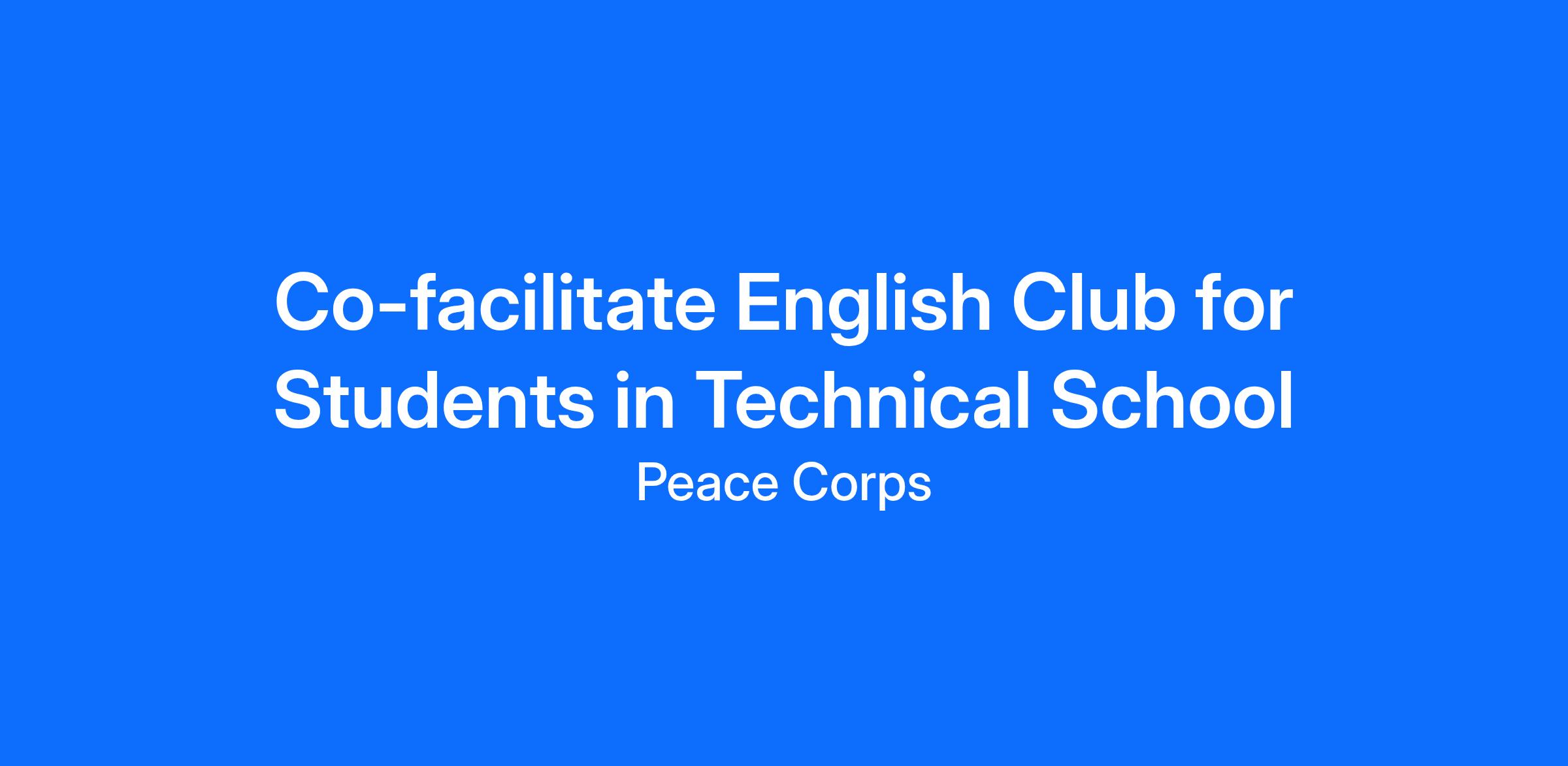 • Co-facilitate two, 1-hour English conversational clubs twice per week for 4–5 students with activities that strengthen the students’ ability to express themselves in English and develop life and vocational skills. Estimated time: 4 hours per week