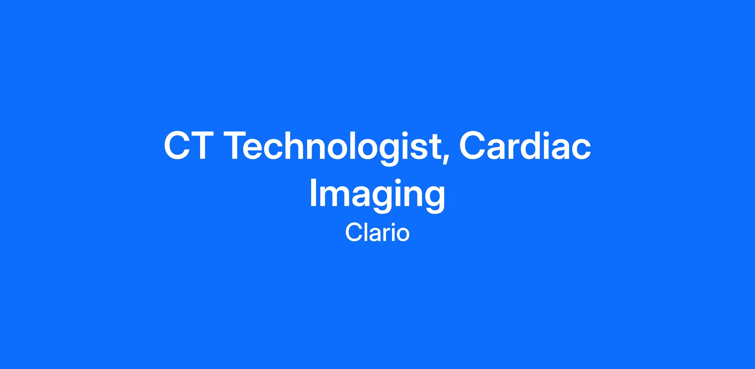 Clario’s medical imaging expertise is unmatched in the industry, and we’re expanding our operations team. We’re looking for CT Technologists with cardiac imaging experience to help ensure the quality and compliance of image data used in clinical trials. If you’re passionate about advancing healthcare through technology and precision, we invite you to join our mission-driven team.