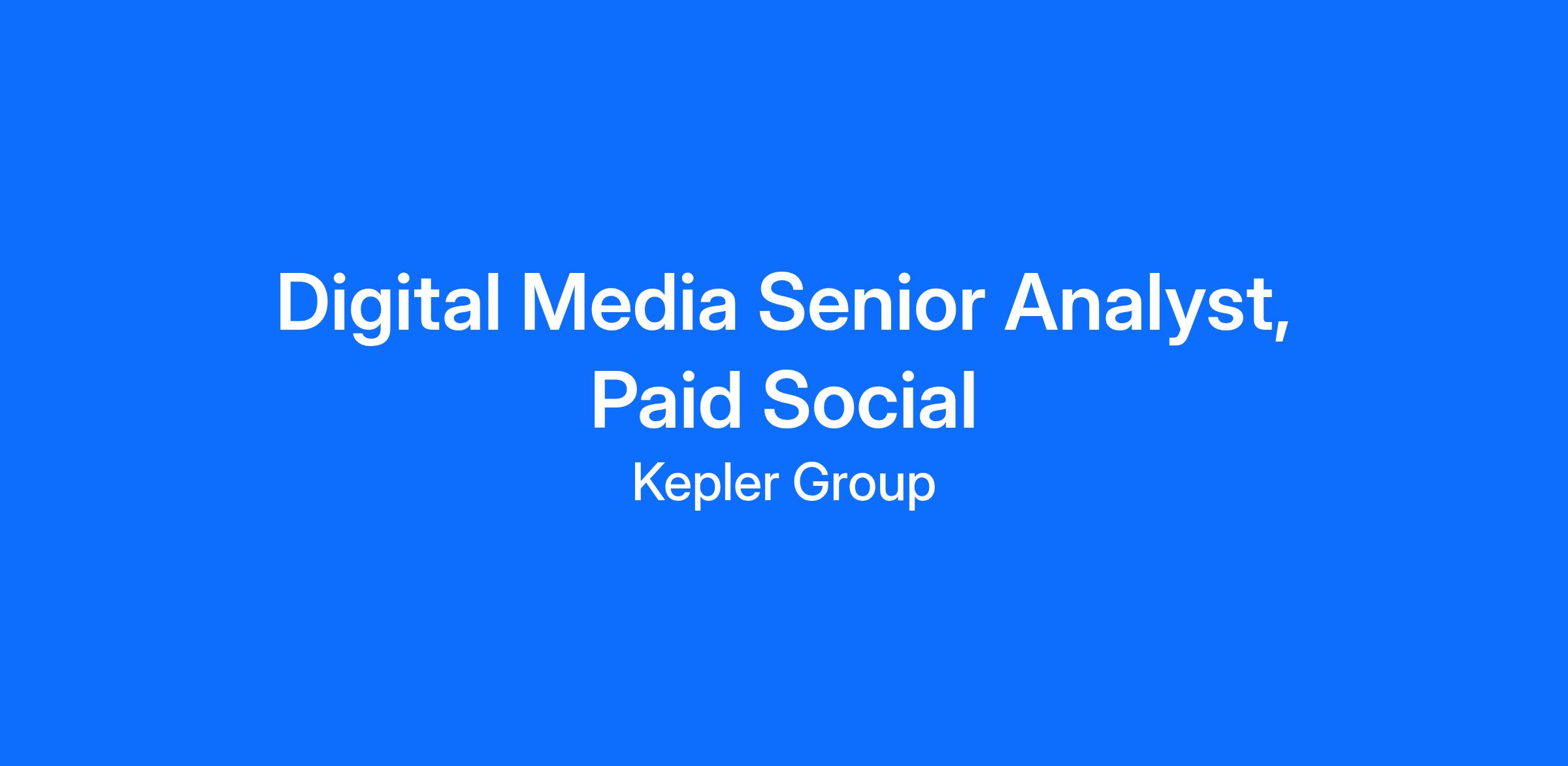 As a Digital Media Senior Analyst, Paid Social (Internal title: Senior Analyst, Optimization & Innovation) on our Optimization & Innovation team - you’ll serve as a primary client point of contact, oversee campaign execution, project management and lead many aspects of program management and innovation. You’ll succeed as an OISA if you’re a natural leader, have exceptional communication and organizational skills, and are a creative problem solver with an instinct to use data.