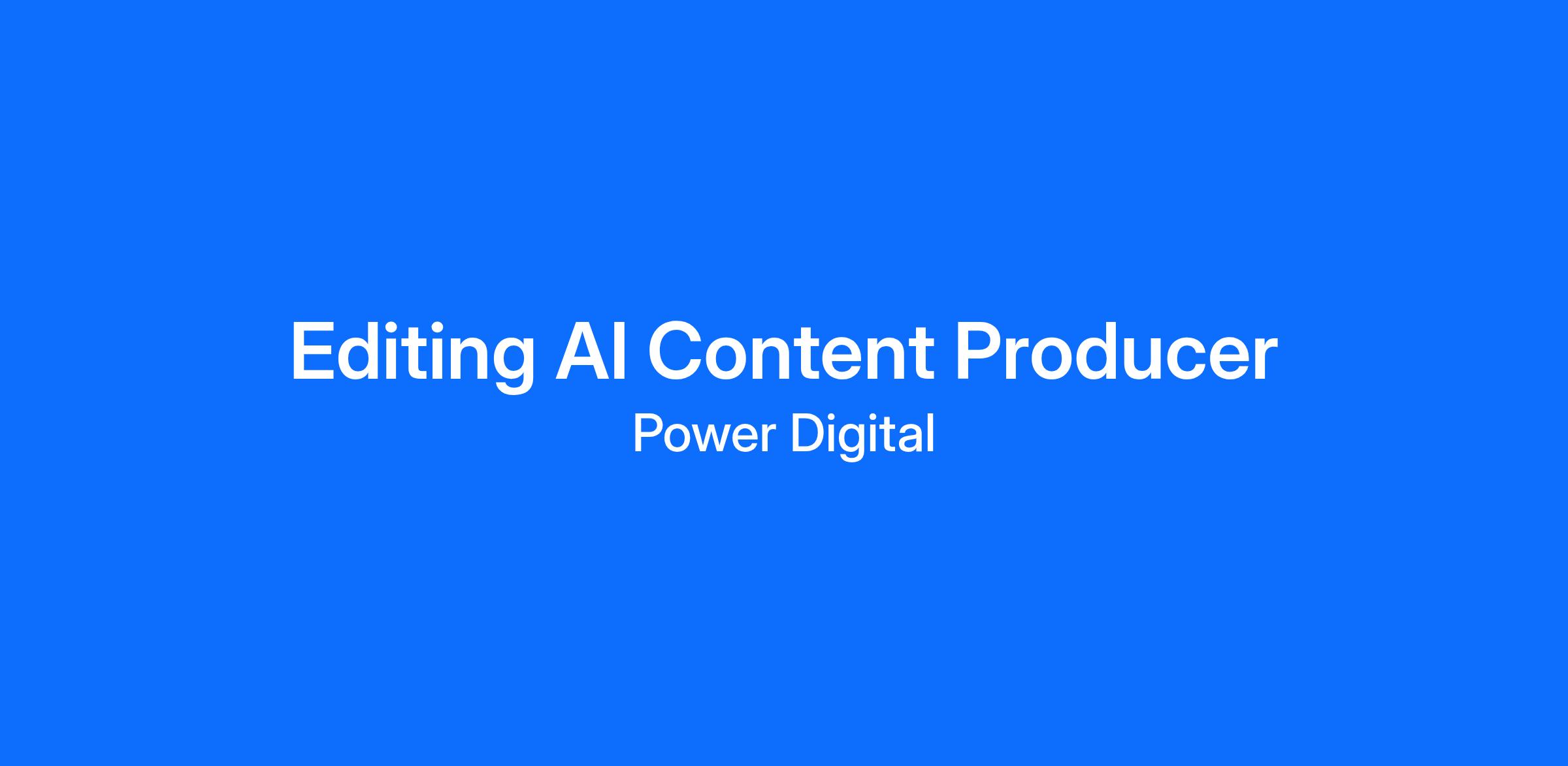 - Power Digital is looking for a Content Producer to assist in the daily execution of our cross-functional video content needs—including AI-assisted image and video generation—in support of our brand vision and business goals through performance marketing. You will be working in a fast-paced, creative environment that offers an opportunity to be part of building a rapidly growing agency.