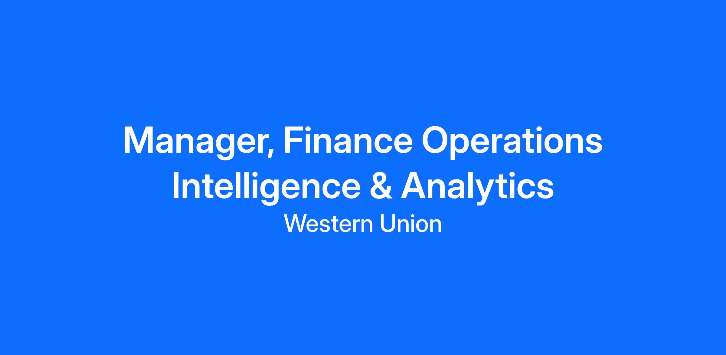Are you interested in joining a globally diverse organization where our unique contributions are recognized and celebrated, allowing each of us to thrive? Then it’s time to join Western Union as a Manager, Finance Operations Intelligence & Analytics within our Global Finance Operations team.