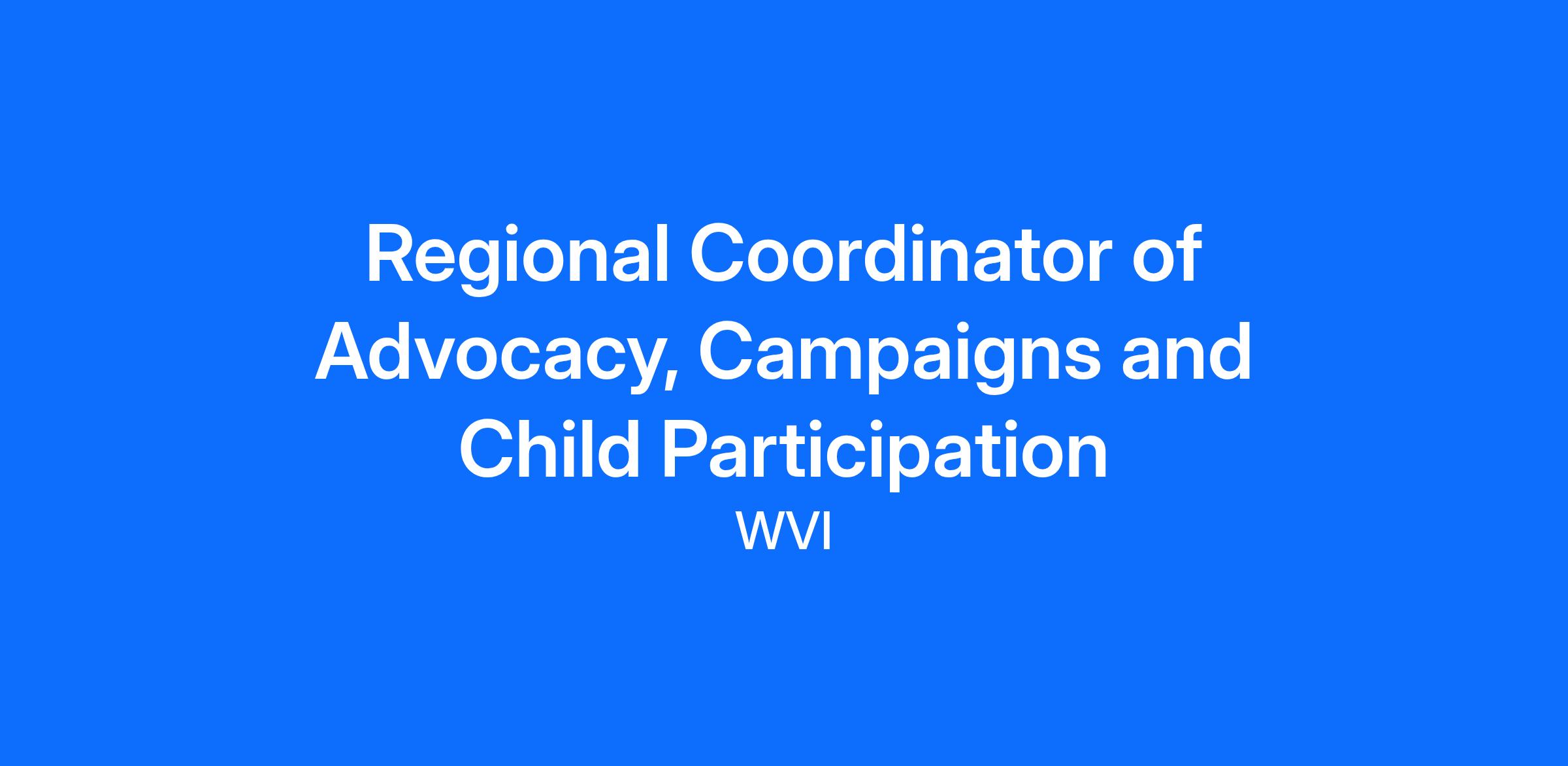 The Regional Coordinator of Advocacy, Campaigns, and Child Participation at World Vision Latin America and the Caribbean Office (WVLACRO) coordinates the strategic design, implementation, and measurement of evidence-based advocacy initiatives to ensure the well-being of children. The position holder provides strategic advice to focal points in national offices to successfully implement and monitor their advocacy plans to amplify WV’s impact. In addition, identifies, builds, and nurtures solid collaboration relationships with regional bodies, national governments, civil society, private sector, and children, to influence policy, budget allocation, and behavioral change conducive to stronger protection systems and safer and more inclusive communities for children. Strategic political influence, social mobilization, campaigns, and the inclusive and meaningful participation of children and their networks across Latin America and the Caribbean are key responsibilities of this position. The role focuses on advancing the rights of children through a solid local-to-global advocacy approach, which includes networks of children, grassroots structures, Faith-Based Organizations (FBOs), local governments, civil society, and national authorities in the legislative, executive, and judiciary branches. To position key advocacy and External Engagement lines (EE), this role works in close coordination with Communications and Faith and Development (F&D) Mobilization teams.