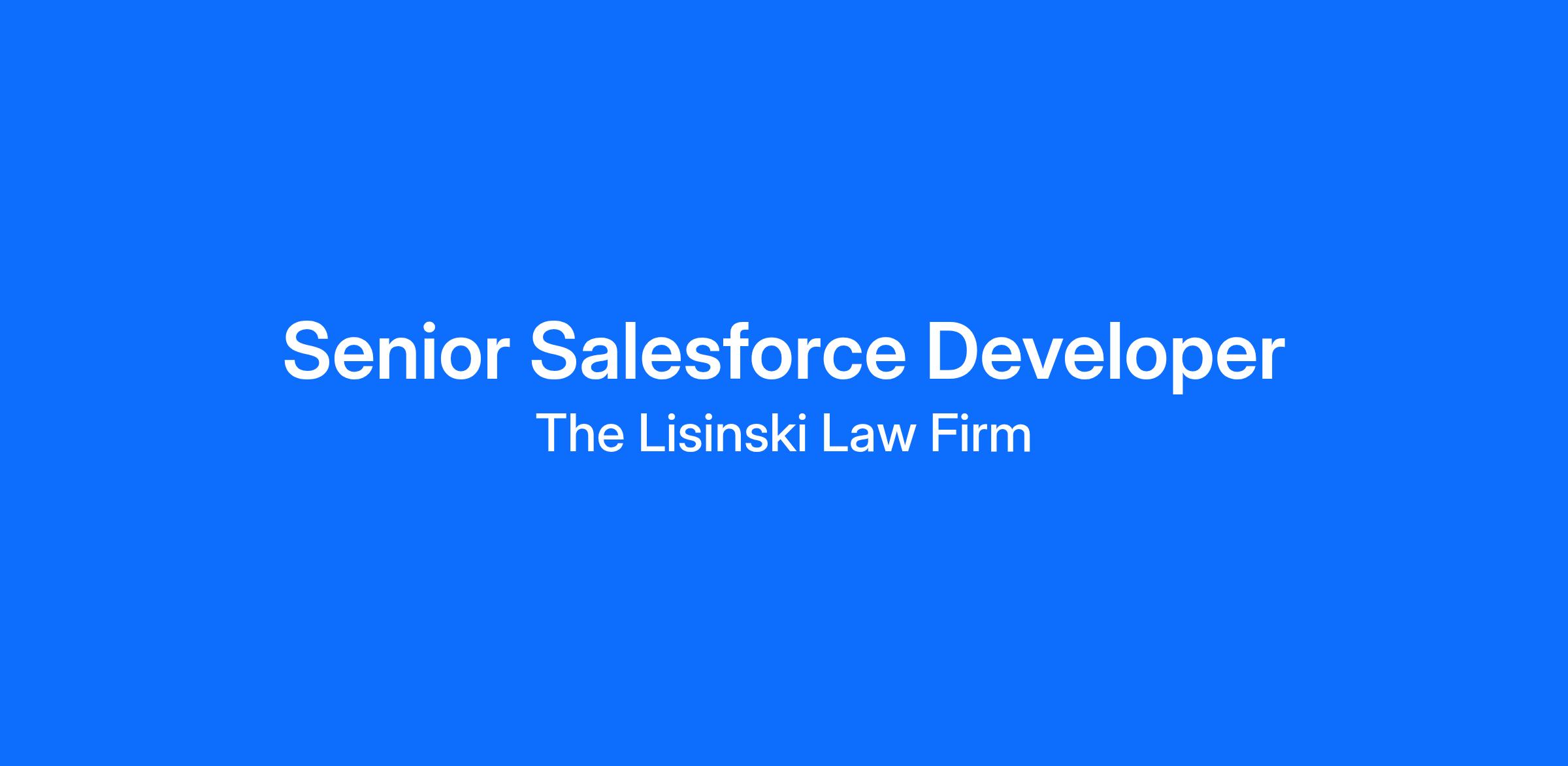 Lisinski Law Firm is seeking an experienced Senior Salesforce Developer to lead the development and optimization of our Salesforce platform. This role is pivotal in streamlining our legal operations, improving client service, and ensuring seamless integration with our technology ecosystem.