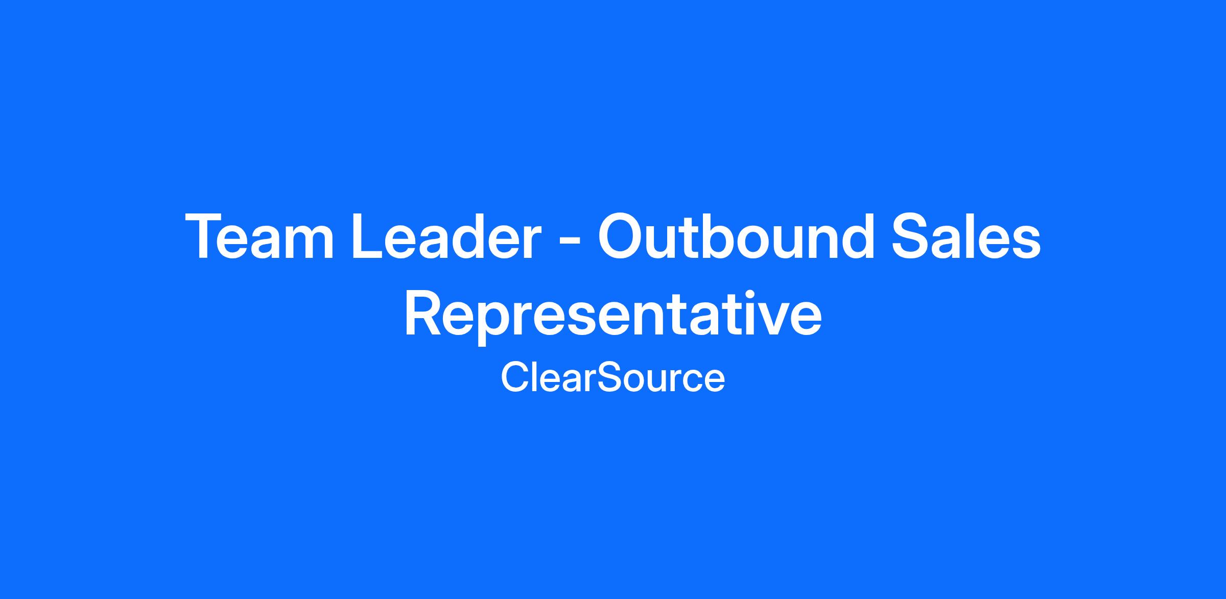ClearSource is looking for an exceptional Team Leader - Outbound Sales Representative. If you are a sales driven person with prior experience in the same field and want to join a company with a fantastic work culture, then this opportunity is for you.